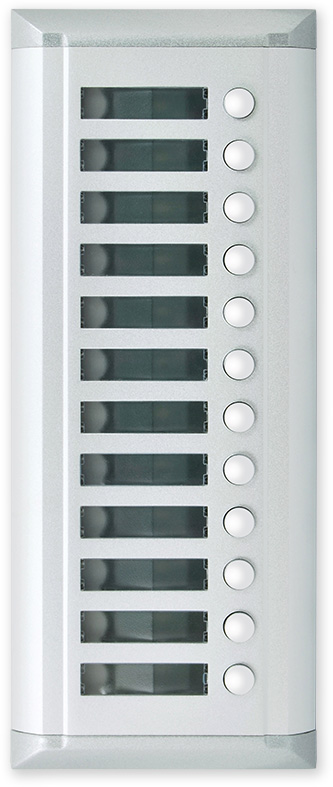 Rozšiřující venkovní jednotka s 12 tlačítky (adresami). Slouží pro rozšíření video nebo audio systému V-LINE. K video venkovní jednotce V4R lze připojit maximálně dvě rozšiřující jednotky a systém tak rozšířit na max. 28 adres. K audio venkovní jednotce AV8 lze připojit max. 4 rozšiřijící jednotky do max. 56 adres.
