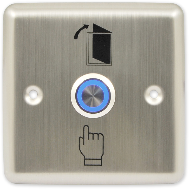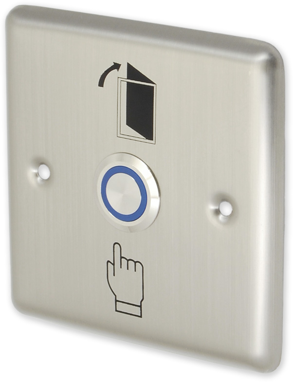Odchodové tlačítko s podsvětleným hmatníkem, NO/NC kontakt, nerezové provedení, možnost montáže na krabici K68.