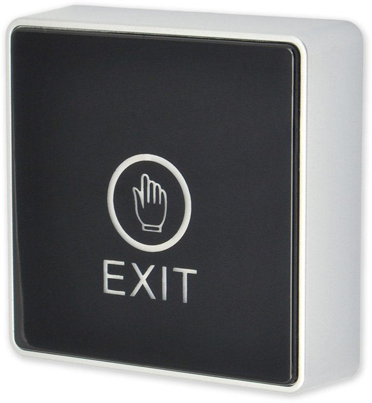 Dotykové odchodové tlačítko s NO/NC kontaktem. Pro funkci vyžaduje napájení, při dotyku prstem na vyznačeném místě je aktivováno relé. Modul je barevně podsvícen pro lepší orientaci ve tmě. Plastové provedení, povrchová montáž.