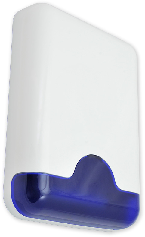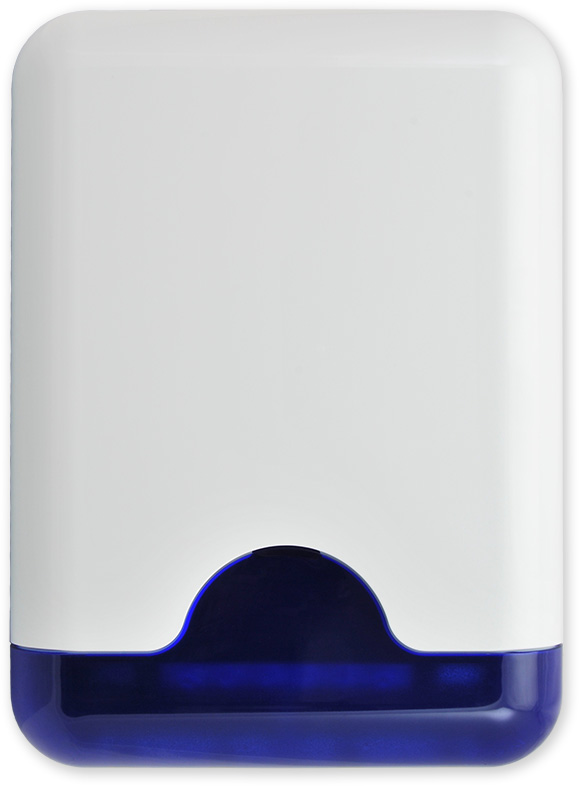 Venkovní zálohovaná siréna s akustickou a optickou signalizací. Použitím piezoměniče pro akustickou část a stroboskopu pro optickou signalizaci je odběr sirény snížen na minimum a k zálohování tak postačí malý Ni-MH akumulátor, který je součástí dodávky. Pod modrým plastem majáku jsou umístěny dvě LED, které blikáním signalizují přítomnost napájecího napětí v siréně a dobíjení jejího akumulátoru. Vnitřní plechový kryt elektroniky zvyšuje odolnost sirény proti mechanickému poškození.