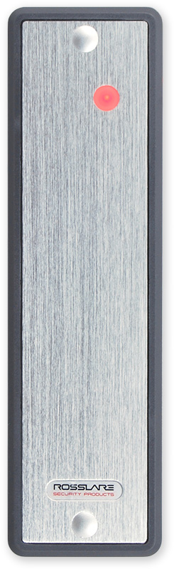 Čtečka karet EM 125 kHz pro vnitřní nebo venkovní použití. Designové provedení, čtečka je vhodná pro montáž do prostor, kde je kladen důraz na vzhled. Možnost externí aktivace zelené i červené LED a bzučáku. Čtečka má univerzální výstup Wiegand 26 bitů a volitelně pro jiné systémy Clock & Data, nebo RS-232.
