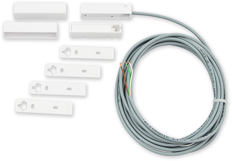 Magnetický kontakt pro systémy MAR s přepínacím kontaktem, povrchové provedení, třídrátový přívodní kabel v délce 3 metry, rozměry 54 x 13 x 13 mm, pracovní vzdálenost 0 - 26 mm. Součástí balení je montážní podložka.
