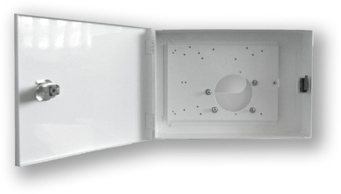 Univerzální plechový box pro montáž na zeď, určený pro klávesnice s označením LCD+, LED+ ústředen SPECTRA SP, MAGELLAN, DIGIPLEX EVO. V boxu je umístěn vyjímatelný plech pro snadnou montáž klávesnice. Dvířka jsou pevně spojena s boxem pomocí pantů. Součástí boxu je zasouvací tamper a mechanický zámek.