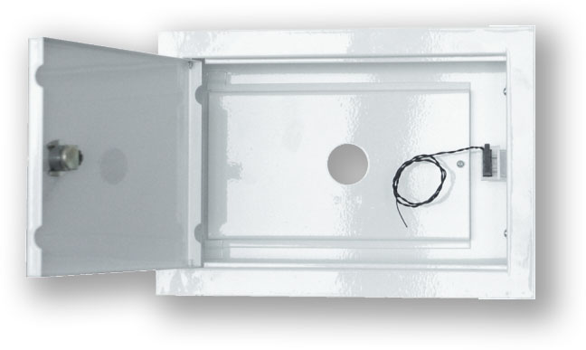 Univerzální plechový box pro zapuštění do zdi určený pro klávesnice s označením LCD+, LED+ ústředen SPECTRA SP, MAGELLAN, DIGIPLEX EVO. V boxu je umístěn vyjímatelný plech pro snadnou montáž klávesnice. Dvířka jsou uchycena pomocí pantů a spojena s krycím "límcem", který překryje nerovnosti vzniklé při zapuštění spodní části boxu do zdi. Součástí boxu je zasouvací tamper a mechanický zámek.