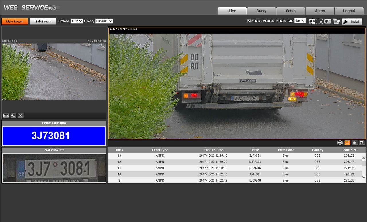Venkovní kompaktní IP kamera určená pro moderní dopravní a parkovací systémy. Je vybavena LPR softwarem pro rozpoznání a záznam registračních značek vozidel (tzv. SPZ) při rychlostech do 40 km/h. Kamera má vysoce kvalitní 2 Mpix CMOS snímač (1920 x 1080 px), motorický objektiv 4,7 - 47 mm, IR přísvit do 40 m a 25 snímků za vteřinu. Dále je vybavena funkcemi WDR (120 dB) a 3D-DNR zvyšující kvalitu obrazu v náročných světelných podmínkách, zvýšení ostrosti, zvýraznění okrajů v obraze, korekcí prázdných pixelů a auto expozicí. Průchod kabelů konzolou. Ukázková videa výrobce Dahua na youtube.