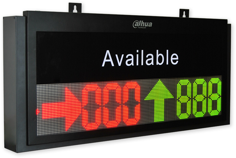 Vnitřní LED parkovací ukazatel, 2 směry, zobrazení počtu volných míst, IP komunikace s centrálním serverem. Ukázková videa výrobce Dahua na youtube.