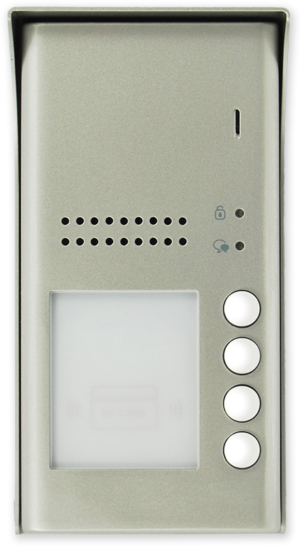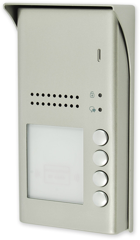 Venkovní dveřní audio jednotka se 4 vyzváněcími tlačítky, čtečkou karet, reproduktorem a mikrofonem.