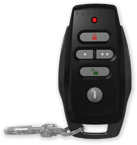 Bezdrátová obousměrná 5 tlačítková klíčenka v novém elegantním designu "auto-klíčenky" v černé barvě s podsvícenými klávesami. Slouží k uživatelskému ovládání ústředen Paradox a zjištění stavu ústředny s optickou a akustickou signalizací na klíčence.