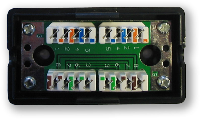 Spojovací krabice Cat.6 UTP se zářezovými svorkovnicemi typu LSA+ (Krone). K zapojení vodičů je nutné použít nástroje pro tento typ svorkovnice.
