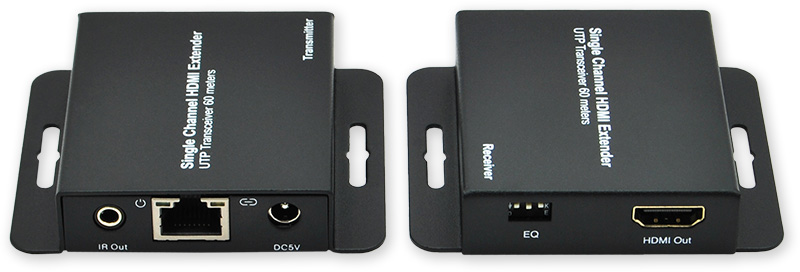 Dvojice aktivních převodníků HDMI videosignálu na UTP (cat.5e/6), dosah 60 m, bez zpoždění a interferencí, jednokanálový, přenos IR signálu, podpora HDMI 1.3., ESD a vysokonapěťová ochrana, napájení 5 V= (adaptér součástí dodávky).