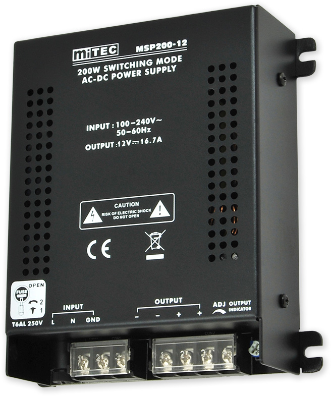 Přídavný spínaný zdroj s výstupním napětím 12 V/16,7 A, napájení 230 V. Zdroj je vybaven ventilátorem aktivního chlazení.