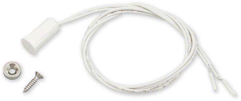 Dvoudrátový závrtný magnetický kontakt určený pro zápustnou montáž do oken, dveří atd.