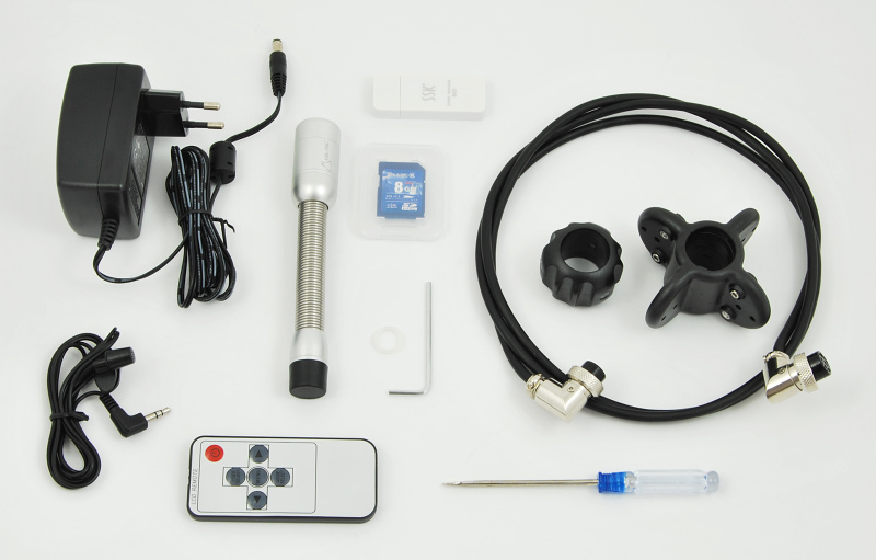 O perfektní záznam obrazu se stará kamera s kvalitní safírovou čočkou o rozlišení 720 x 576. Tělo kamery je vyrobeno z hliníkové slitiny, hlavice je pak vybavena 12 bílými LED, jejichž intenzitu svitu lze jednoduše a plynule regulovat. Skvělou viditelnost v jakémkoliv prostoru dále podporuje široký úhel záběru 105°. V balení jsou k dispozici dva vystředováky (40 a 80 mm) a další 4 velikosti až do průměru 190 mm je možné dokoupit.