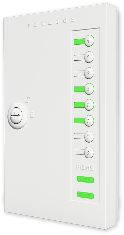 Modul PGM výstupů, připojený na BUS sběrnice ústředen SPECTRA SP/MAGELLAN/DIGIPLEX EVO. Modul slouží k rozšíření o 8 programovatelných výstupů v provedení relé, které lze ovládat přímo z aplikace Insite Gold. Modul je dodáván v plastovém boxu s tlačítky a optickou signalizací aktivace PGM. V systému DIGIPLEX EVO je počet instalovaných modulů PGM82 omezen na 4, v systémech SPECTRA SP a MAGELLAN je možné použít pouze jeden modul.