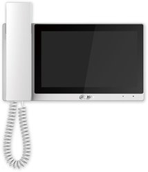 Vnitřní zobrazovací jednotka se sluchátkem pro IP videotelefony řady DAHUA s barevným LCD 7" dotykovým displejem, slotem pro micro SD kartu (není součástí balení), reproduktorem a mikrofonem. Je určena pro povrchovou montáž. Komunikace po SIP protokolu, ve venkovní jednotce musí být SIP firmware. Možnost připojení až 20 dveřních jednotek a 8 externích IP kamer Dahua, možnost připojení tlačítka zvonku od bytových dveří, 6 alarmových vstupů a 1 výstup, hodiny a datum.