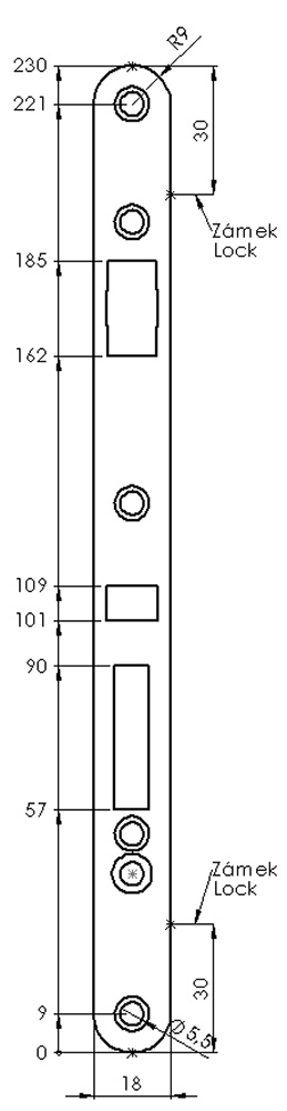 Čelo zámku určené pro zámky s roztečí 90/50.
