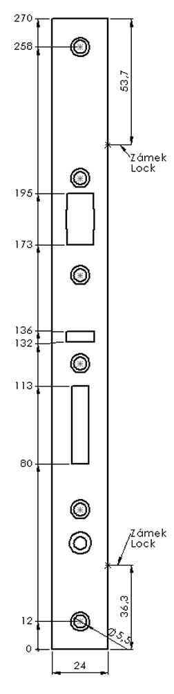 Čelo zámku určené pro zámky s roztečí 92/35.