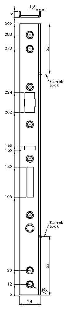 rozměry 300 x 24 x 6 mm síla 1,5 mm