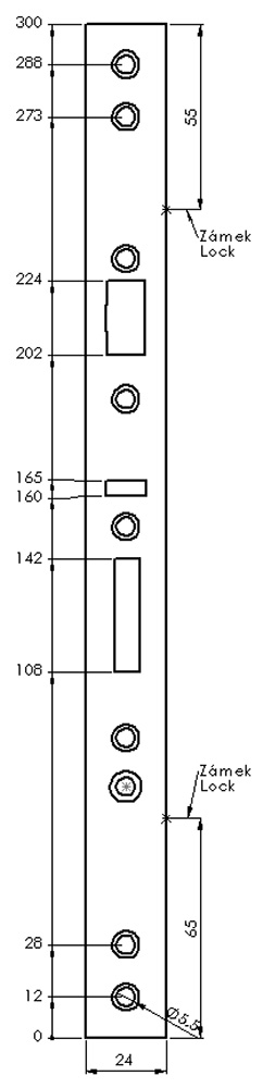 elo zámku určené pro samozamykací zámky ERBI s roztečí 92 mm (řady 9235 a 9245), zámek na osu.