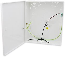 Univerzální malý plechový box pro všechny ústředny nebo moduly. V zádech boxu jsou umístěny přesné otvory pro vložení distančních sloupků k připevnění ústředen nebo modulů. Dvířka jsou uchycena pomocí nasouvacích pantů, na přední straně je předlisovaný otvor pro mechanický zámek. Ze zadní strany boxu jsou otvory pro uchycení na zeď, které jsou osazeny plastovými distančními sloupky. Součástí dodávky je zasouvací tamper, 2 vodiče pro propojení napájení 16 V ~ z transformátoru do ústředny, zemnící vodiče se zemnící svorkou na boxu. Do boxu je možné umístit akumulátor s kapacitou maximálně 7 Ah.