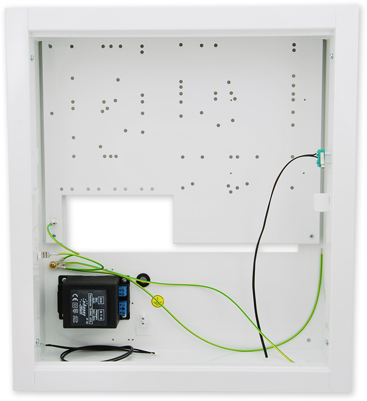 Velký univerzální plechový box pro všechny ústředny a moduly určený pro zapuštění do zdi. V boxu je umístěn vyjímatelný plech s přesnými otvory pro vložení distančních sloupků k připevnění ústředen a modulů. Dvířka jsou uchycena pomocí pantů, na přední straně je zabudován mechanický zámek. Součástí dodávky je zasouvací tamper, 2 vodiče pro propojení napájení 16 V~ z transformátoru do ústředny, zemnící vodiče se zemnící svorkou na boxu. Součástí Boxu VZ je transformátor 40 VA.
