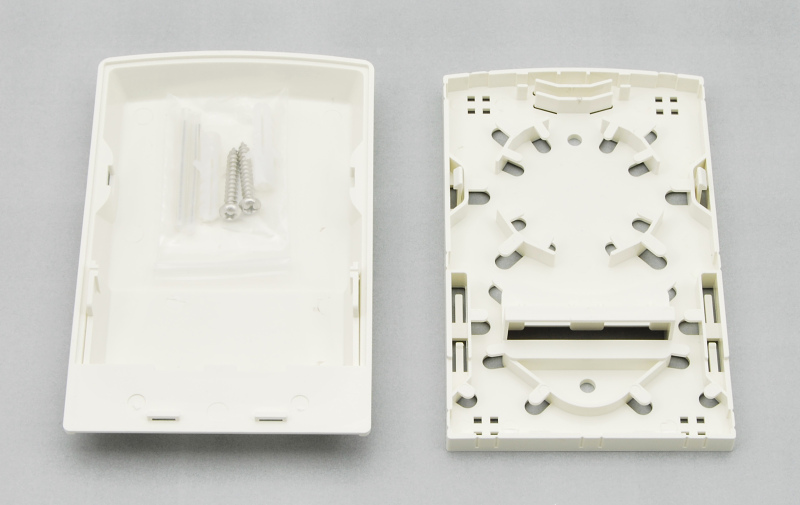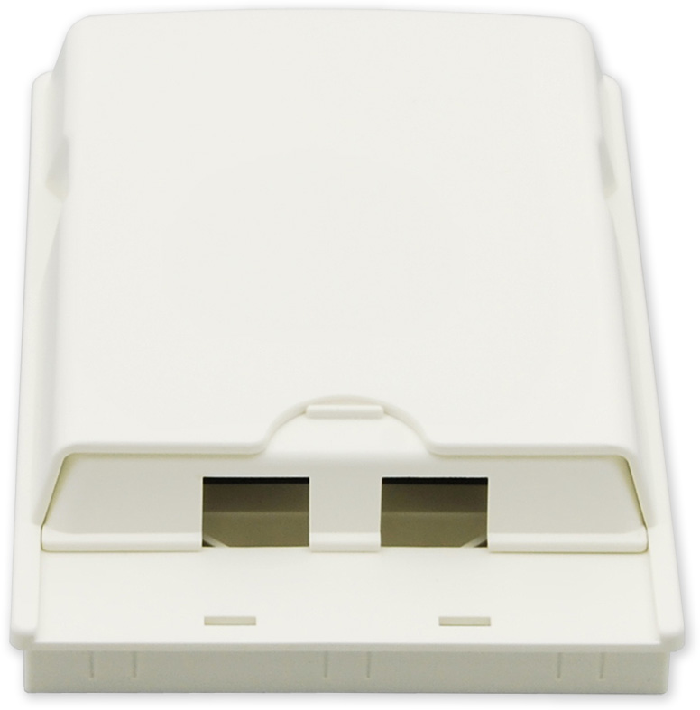 Plastová optická zásuvka pro 2 spojky SC simplex, E2000 simplex nebo LC duplex. Zásuvka obsahuje držáky ochrany sváru, zásuvka je určená pro jednoduché zakončení optické kabeláže s uložením do rozvaděče nebo pro připevnění na zeď. Součástí balení jsou 2 kusy ochrany sváru.