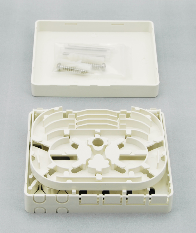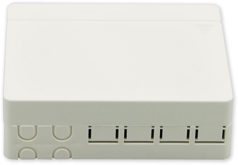 Plastová optická zásuvka pro 4 spojky SC simplex, E2000 simplex nebo LC duplex. Zásuvka obsahuje držáky ochrany sváru, zásuvka je určená pro jednoduché zakončení optické kabeláže s uložením do rozvaděče nebo pro připevnění na zeď. Součástí balení jsou 4 kusy ochrany sváru.