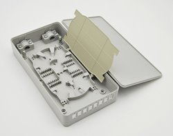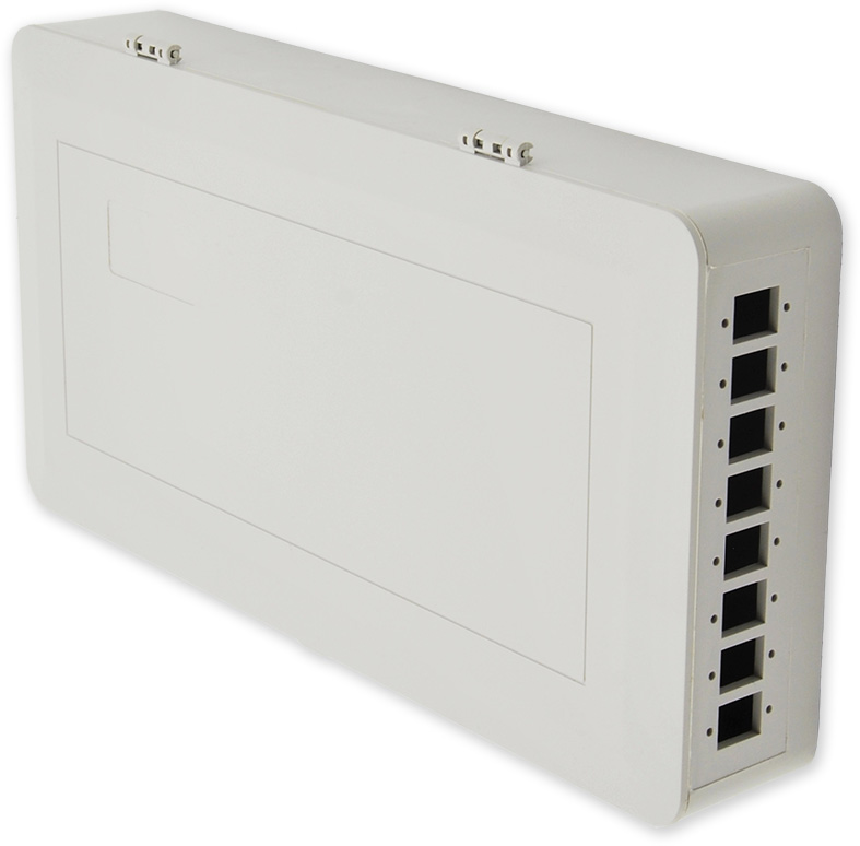 Prázdný plastový optický rozvaděč s uchycením pro 8 spojek SC simplex, E2000 simplex nebo LC duplex v čele rozvaděče. Součástí rozvaděče je optická kazeta pro 12 ochran svárů a uložení optického vlákna. Rozvaděč je možné instalovat na zeď nebo vložit do datovévo rozvaděče.