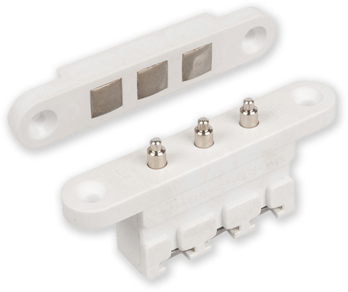 Dveřní odpružený kontakt pro přenos elektrické energie z dveřního rámu do vlastních dveří.