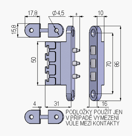Rozměry: rozměry: šířka 16 mm x výška 86 mm x hloubka 31 mm