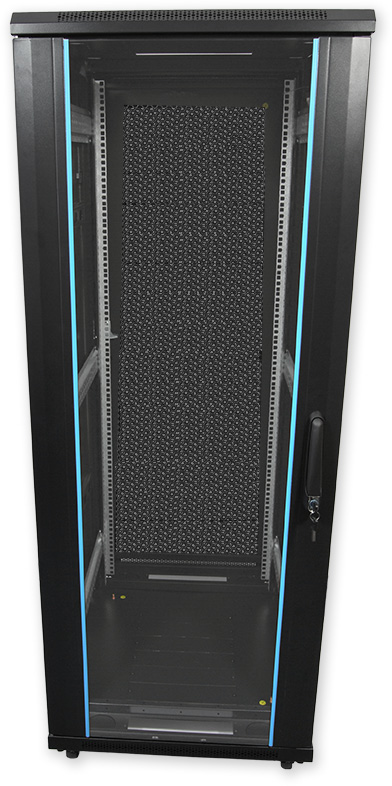 Stojanový rozvaděč je určen pro použití v datových a telekomunikačních instalacích s důrazem na pevnost, přístupnost a efektivní chlazení. Rozvaděč je vybaven předními skleněnými dveřmi a zadními perforovanými dveřmi, které společně zajišťují optimální proudění vzduchu. Při zvýšených nárocích na ventilaci je možné horní kryt rozvaděče osadit ventilační jednotkou. Odnímatelné bočnice usnadňují servisní zásahy a přístup k instalovanému vybavení. Dodávaný v rozloženém stavu, což usnadňuje transport a manipulaci.