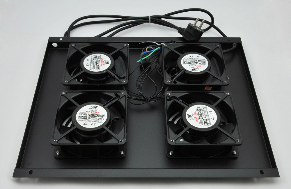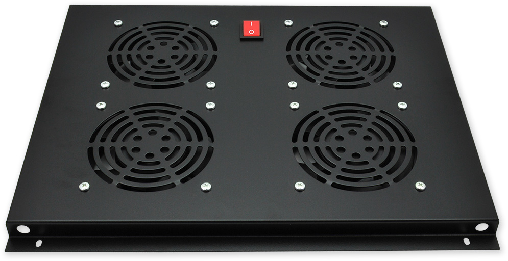 Ventilační jednotka se čtyřmi ventilátory určená pro instalaci do stropu stojanových rozvaděčů řady P s hloubkou 600 mm, bez termostatu, barva černá.