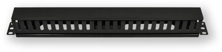 19" vyvazovací plastový panel, výška 1U, barva černá.