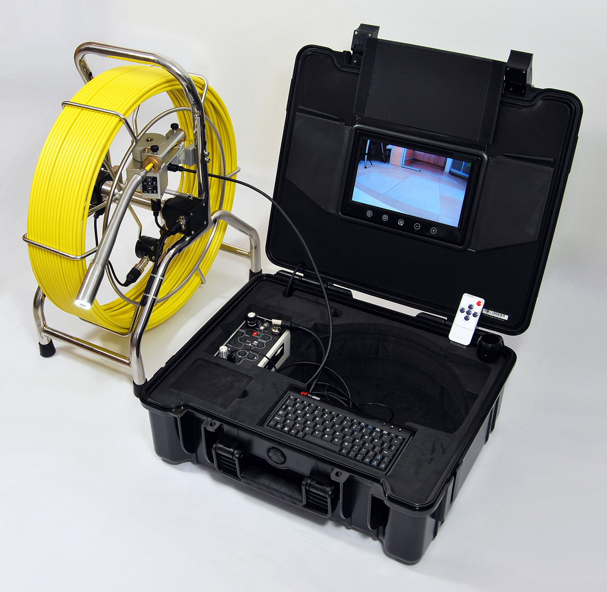 Inspekční kamera PipeCam 60 Expert Mini s 60m kabelem, zobrazovací jednotkou, měřičem vzdálenosti a klávesnicí je zařízení určené pro inspekci kanalizací, odpadů, drenáží, studen, komínů atd. Zobrazovací jednotka 9“ je umístěna v horním víku. 60m kabel je obalený skelným vláknem (pružný, pevný). Kabel i kamera jsou vodotěsné. Záznam je barevný, rozlišení 720 x 576 pixelů.
