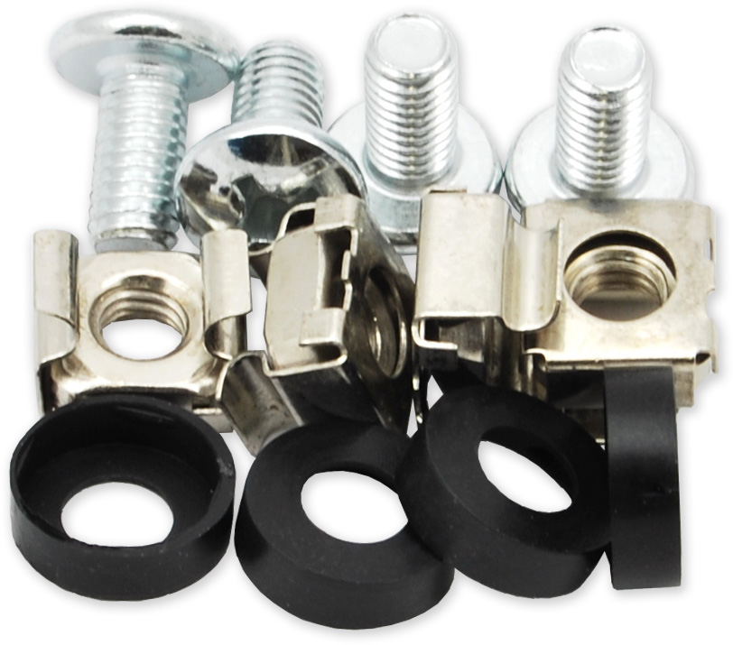 Montážní sada obsahuje 4x šroub M6 + 4x klecová matice + 4x plastová podložka.