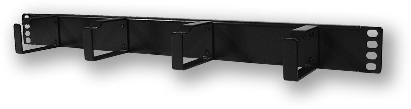19" vyvazovací panel se 4 kovovými oky, výška 1U, barva černá.