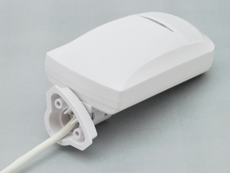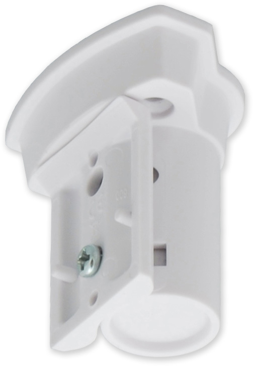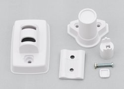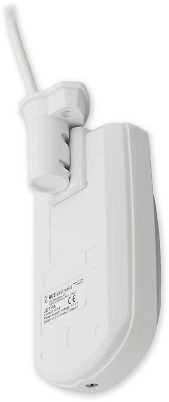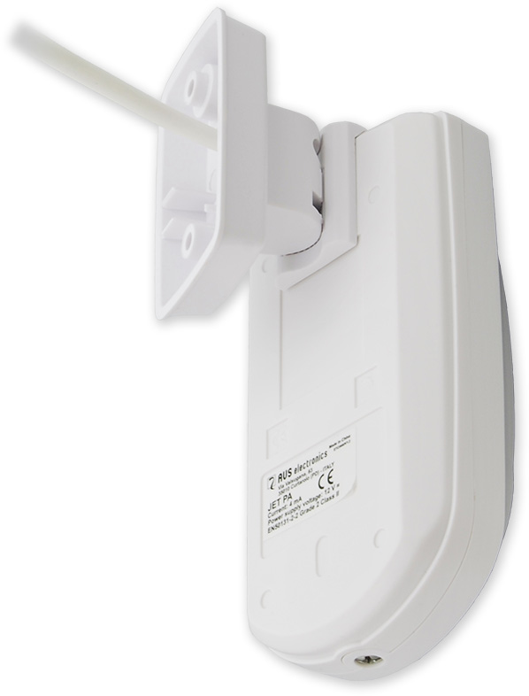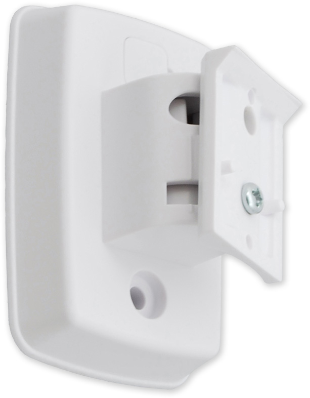 Univerzální plastový držák detektorů JET pro instalaci na stěnu nebo strop. Po instalaci je možné detektor natočit horizontálně a tím nastavit ideální charakteristiku detekce.