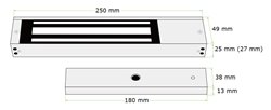 Elektrický přídržný magnet. Pro uzamčení dveří musí být trvale připojeno napájecí napětí. Obsahuje spínací elektroniku s LED indikací, možnost zpoždění aktivace magnetu. Magnet doplněn o releový výstup indikující stav dveří. Dodává se s ocelovým protikusem a montážním příslušenstvím.