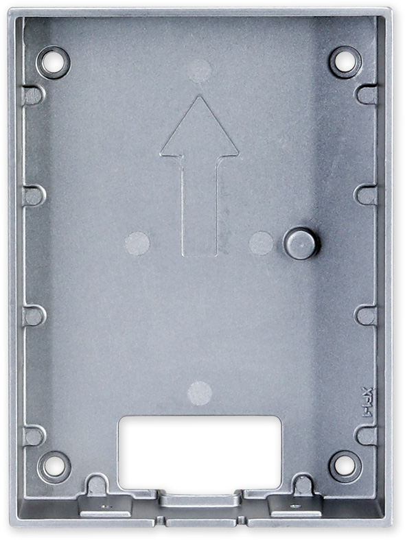 Povrchová krabice určená k montáži dveřní jednotky VTO2202F-P. Kovové provedení ve stříbrné barvě.