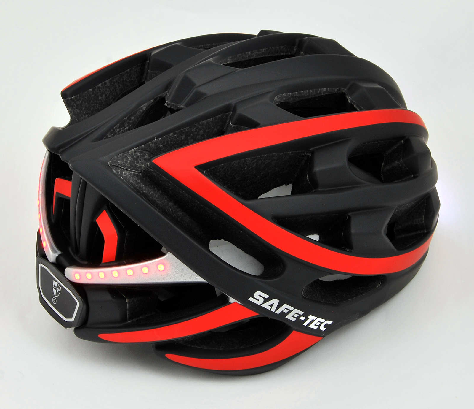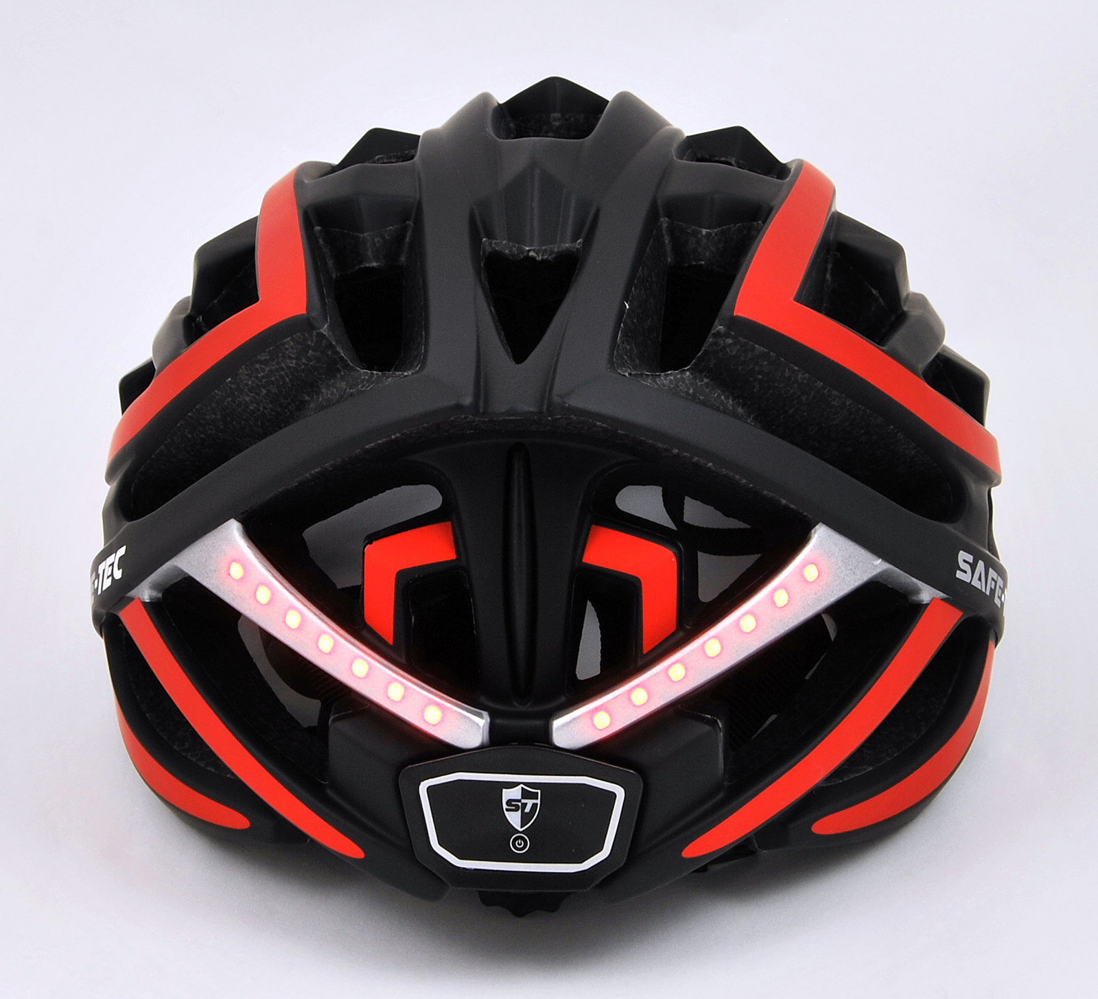 Helma Safe-Tec Tyr přináší zcela novou úroveň bezpečnosti na kole! Helma je vybavena vysoce svítivými předními a zadními LED světly, která také fungují jako směrové ukazatele (blinkry) a automatické brzdové světlo. Snadné ovládání je zajištěno dálkovým ovladačem, který lze jednoduše umístit na řídítka.