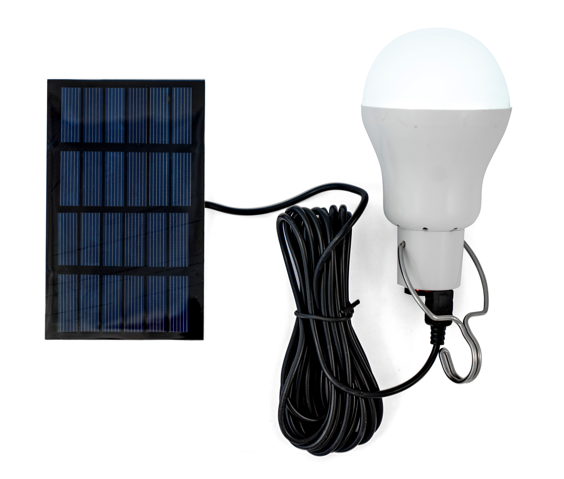 V žárovce je vestavěná AKU baterie o kapacitě 800 mAh. Díky tomu je žárovka přenosná a vhodná na osvětlení různých prostorů. Fotovoltaický panel vždy upevněte na místo s dostatečným slunečním zářením. Tím zajistíte vhodné podmínky pro plné a rychlé nabíjení vestavěné AKU baterie. Pro nabíjení lze použít i nabíječku 5 V. Díky výstupnímu napětí 5 V lze použít solární panel k dobíjení mobilních telefonů!