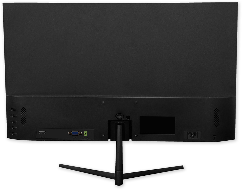 Barevný širokoúhlý LCD monitor 24" pro trvalý provoz 24/7, Full HD rozlišení (1920 x 1080 px), HDMI a VGA vstup, výstup pro sluchátka, možnost VESA uchycení na zeď. Vhodný pro kamerové systémy.