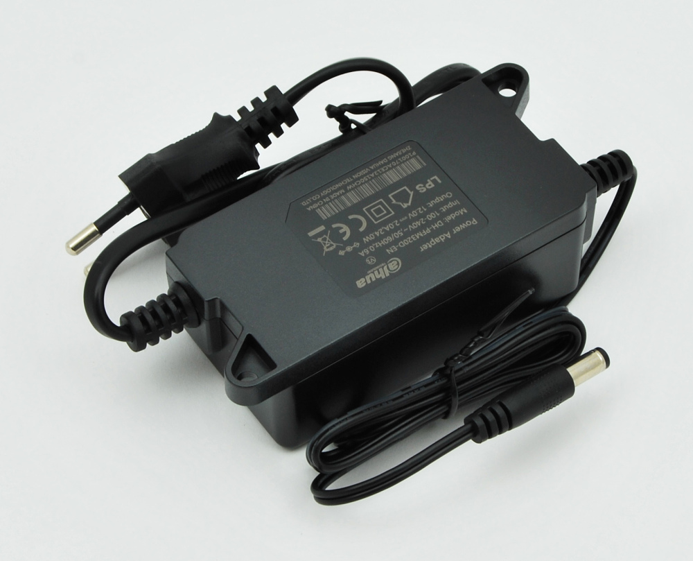 Jednoduchý spínaný zdroj v plastové krabičce zakončený flexo šňůrou pro napájení 230 VAC a dvojlinkou zakončenou konektorem 12 VDC. Ochrana přepětí, přetížení, přehřátí, LED signalizace, montáž volně.