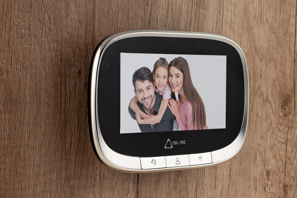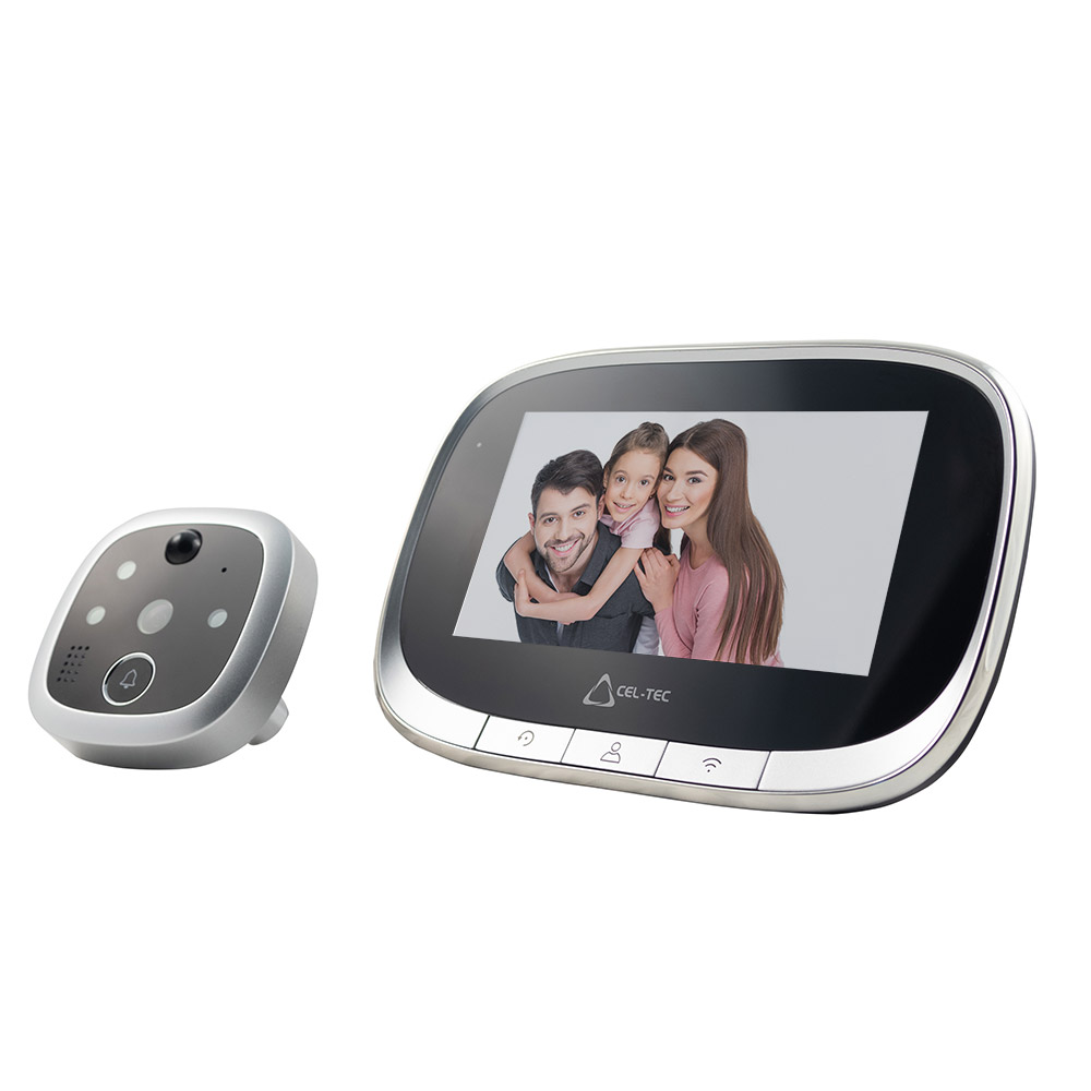 Moderní digitální dvěřní kukátko s úhlem záběru 120°, video/foto záznamem a barevným 4,3" LCD IPS displejem. Kukátko je vybaveno funkcí Wi-Fi pro snadný přístup z mobilního telefonu pomocí globální aplikace Tuya Smart, díky které budete navíc vždy okamžitě upozorněni v případě návštěvy u vašich dveří. Součástí dveřního kukátka je také zvonek. Zařízení je napájeno nabíjecím akumulátorem, ale lze jej připojit také přímo do elektrické sítě pomocí adaptéru.