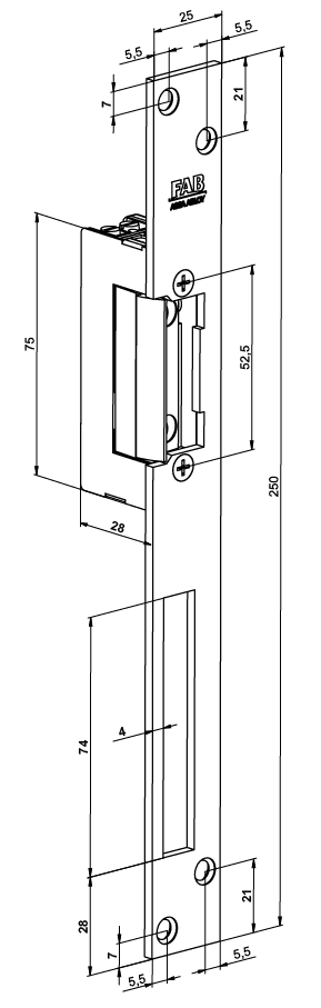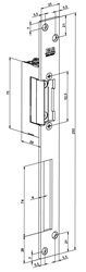 El. otvírač Assa Abloy, který propouští přes horní západku běžného zámku a montuje se do zárubní dveří. Je vybaven mikrospínačem se svorkovnicí, který plně nahradí přídavné mag. kontakty instalované na dveřích. Délka vlastního těla zámku se signalizací je vyšší o 9 mm – mikrospínač. Po přivedení napětí odemčeno. Součástí dodávky je dlouhý čelní panel, který slouží pro uchycení zámku do zárubní.
