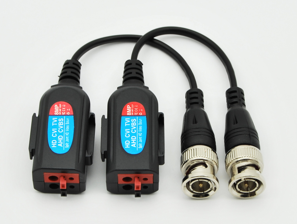 Dvojice pasivních balun převodníků z BNC na datový kabel, pružinové svorky, dosah 8 Mpix až 200 m, 2 Mpix až 400 m, provedení pro zapojení do bloků, přepěťová ochrana.