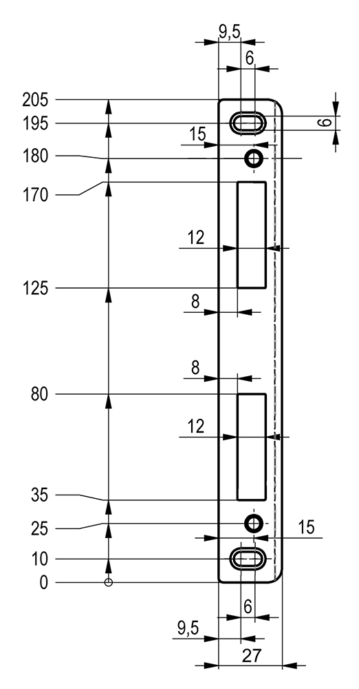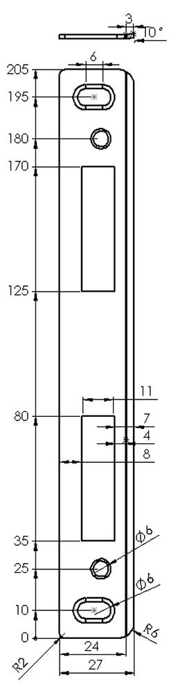 Rozměry: 220 x 22 x 8,5 mm, síla materiálu 1,5 mm