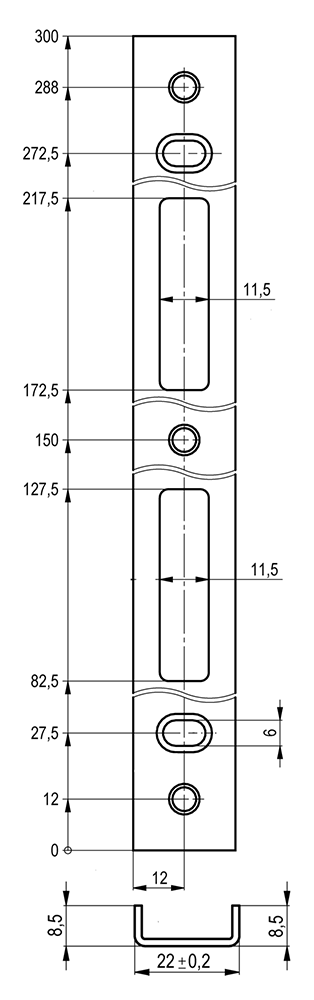 Rozměry: 300 x 22 x 8,5 mm síla 1,5 mm