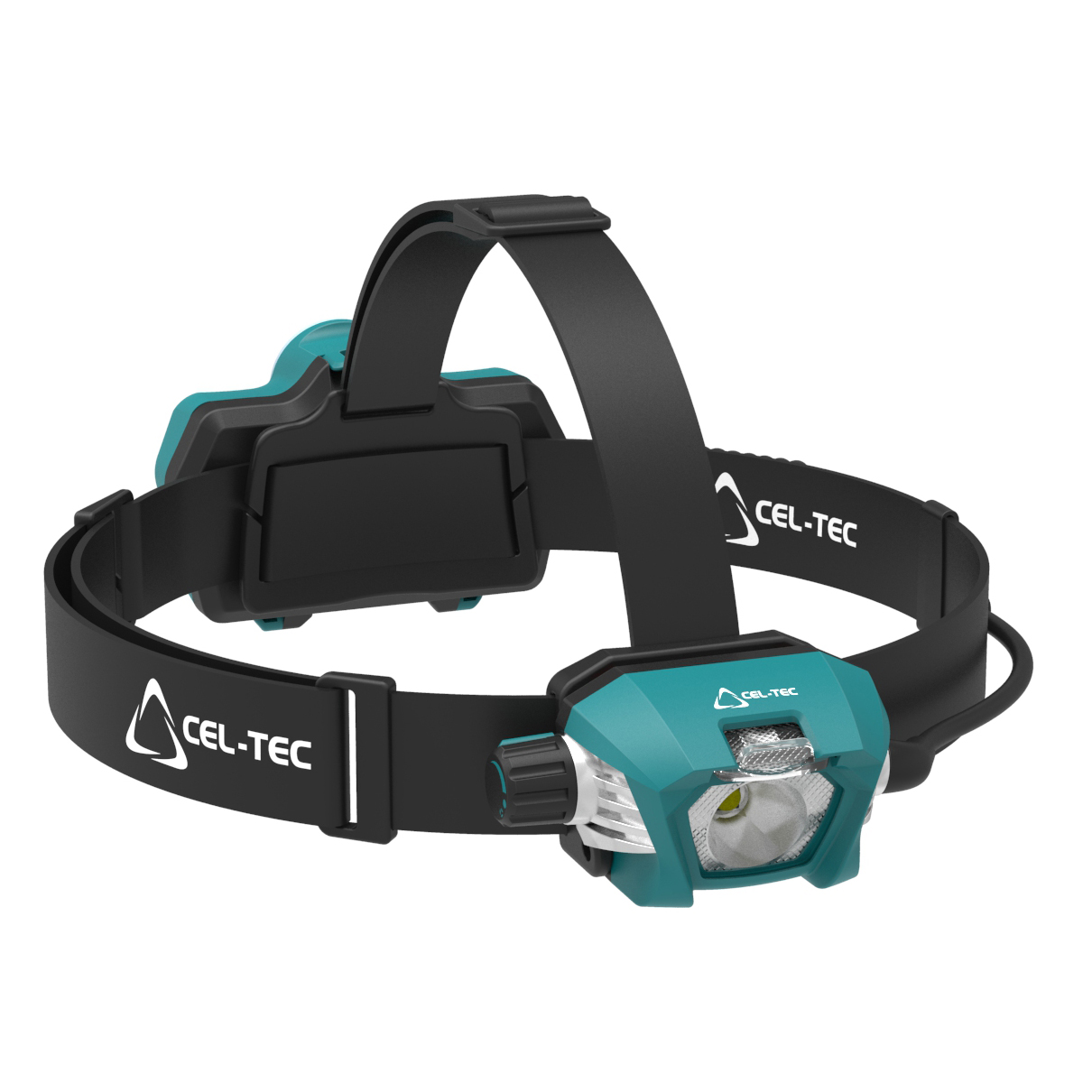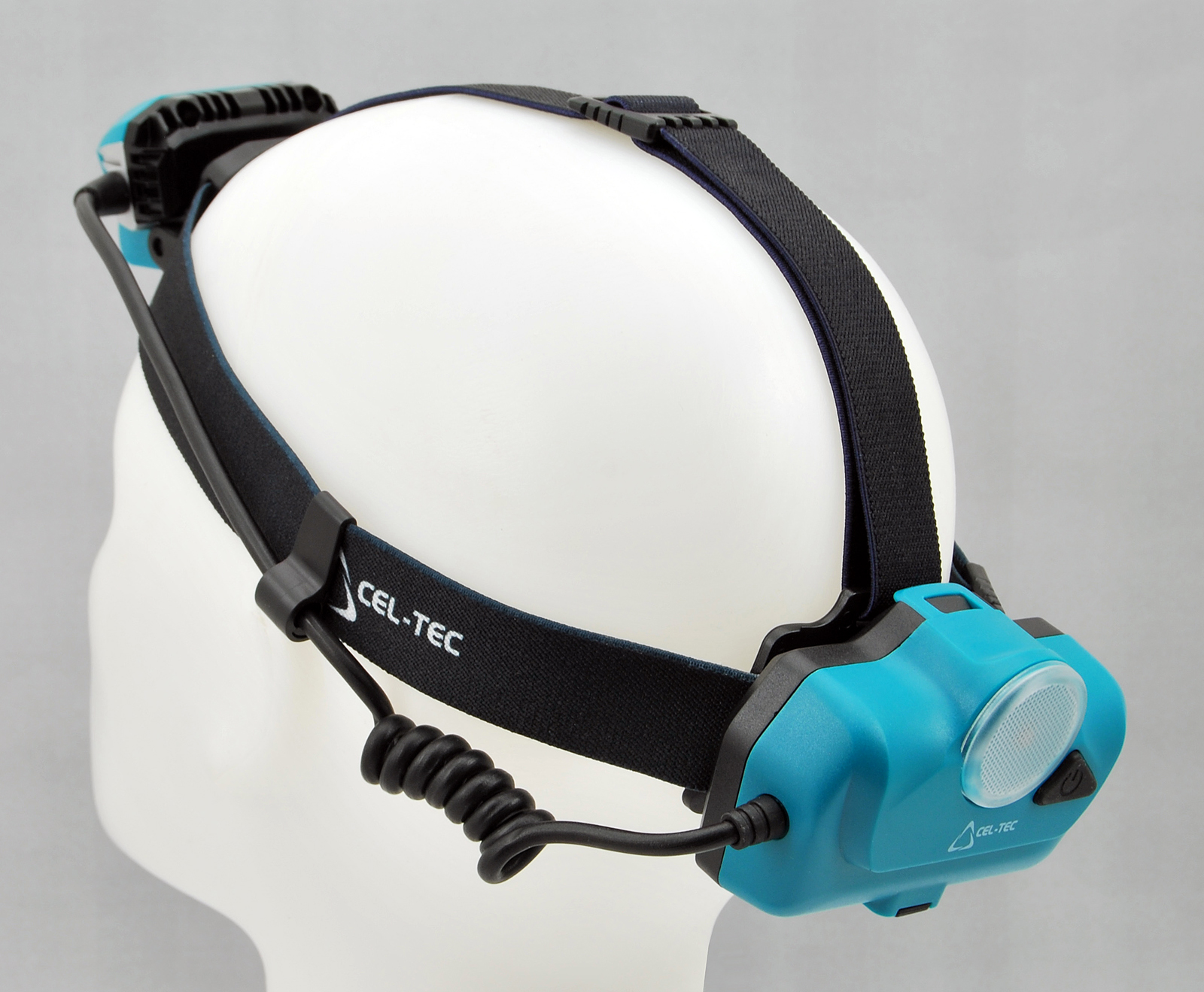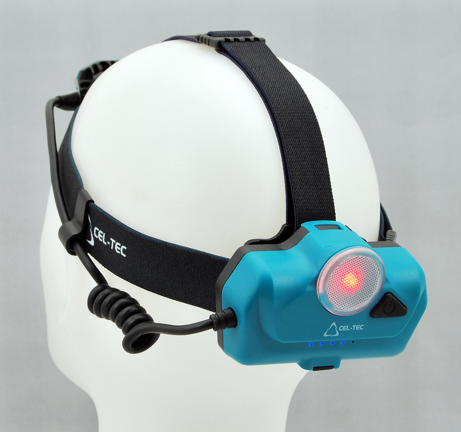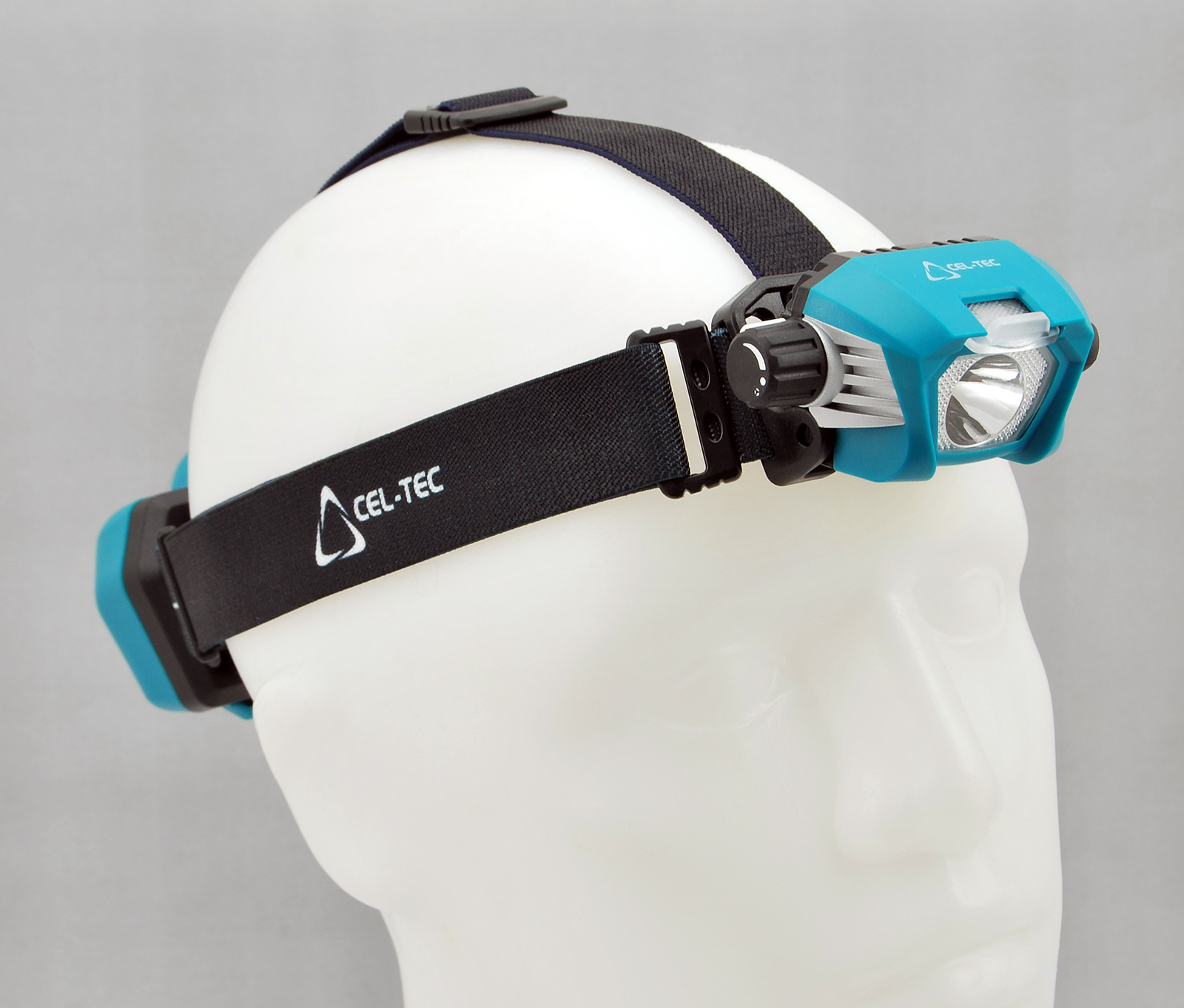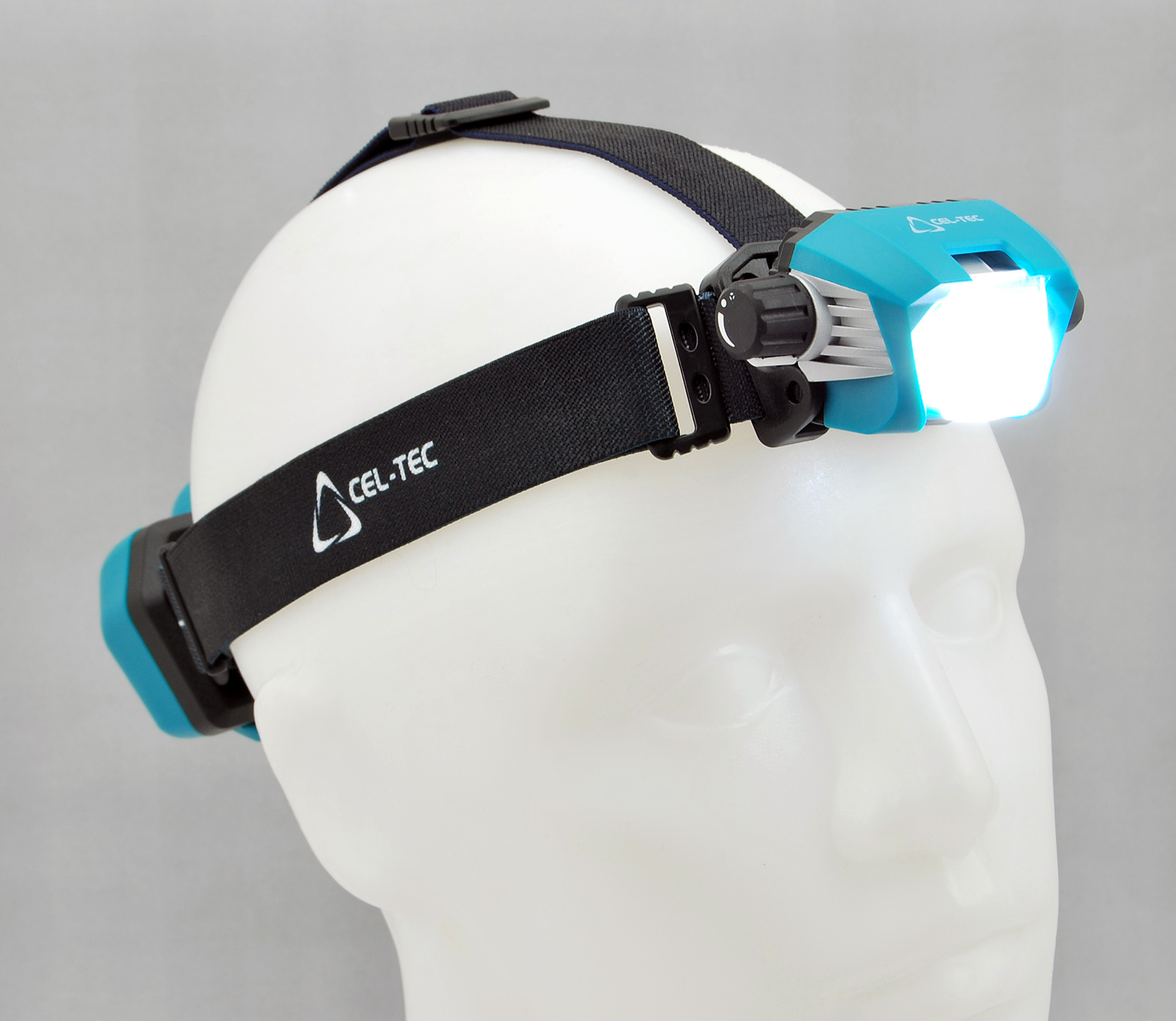 Vysoce výkonná nabíjecí čelovka CEL-TEC HL1000 se zadním bezpečnostním světlem.