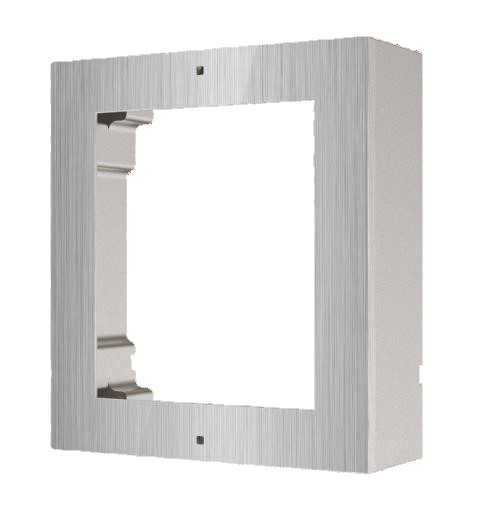 Povrchový instalační rámeček pro 1 modul, nerez, možnost instalace více rámečků vedle sebe, rozměry 117 x 107 x 37 mm, určeno pro IP systém i 2-vodičový systém.